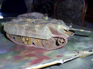 Os presentamos las fotos del nuevo proyecto de nuestro socio Albert Lloret. Se trata de un E-10, que tenía de formar parte de la nueva generación de blindados que Alemania estaba desarrollando, la E corresponde a desarrollo en alemán. Este blindado era una evolución del Hetzer, en verdad el nombre tenía de ser para este, el E-10, pero un error acabó adjudicando el nombre al cazacarros sobre base del 38(t). El E-10 presentaba un original sistema de suspensión que le permitía bajar todo el sistema de rodaje para quedar con un perfil muy bajo y oculto. Al final del conflicto los rusos capturaron un par de cascos sin motorizar ni acabar.La maqueta es la de Trumpeter, mejorada, y el fotograbado específico de la marca Voyager, las cadenas son de Friulmodel para el Pz IV final, era una de las opciones de tipo de cadena pensado para él. Está motorizada, con luces y la suspensión sube y baja como estaba pensado para el carro.